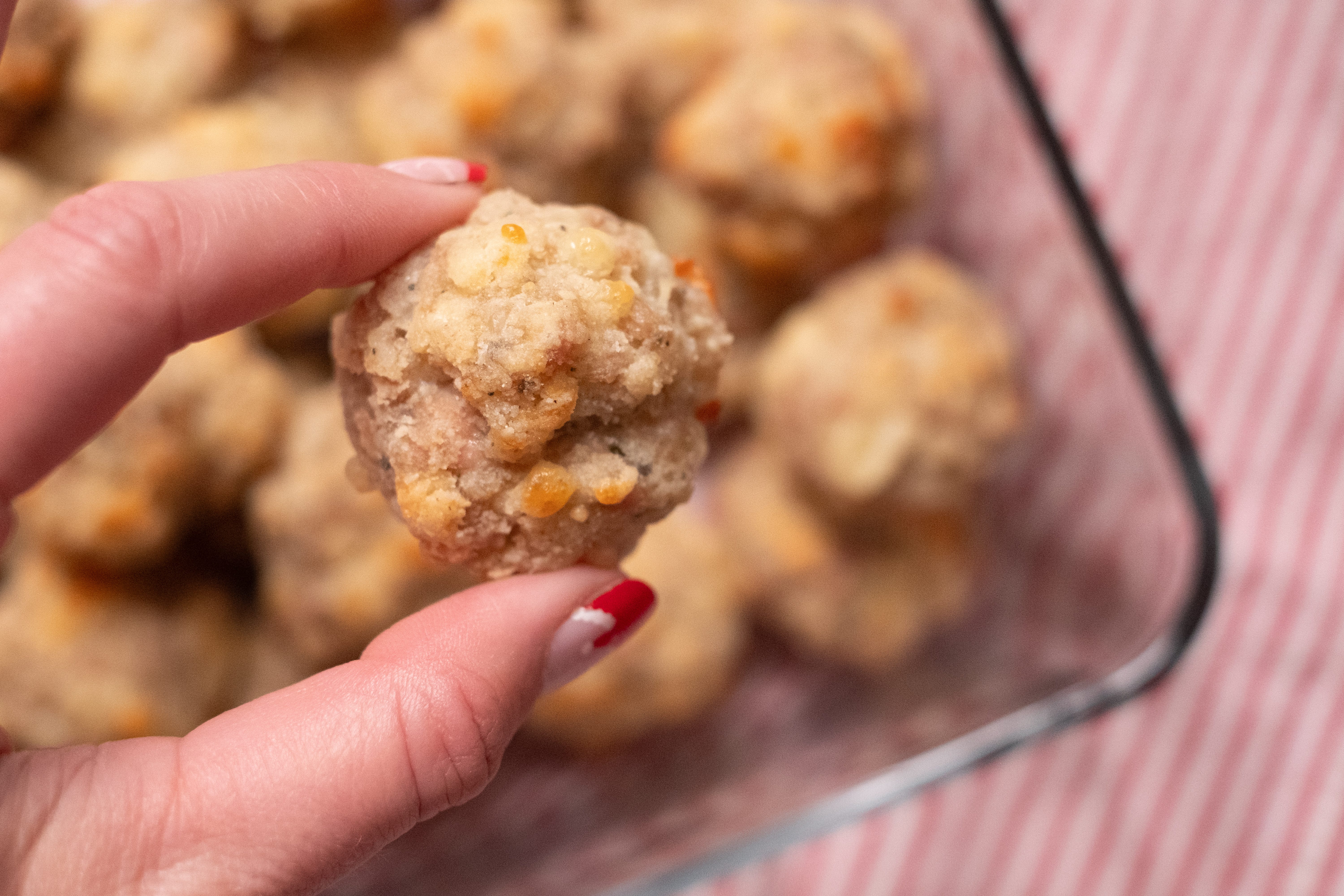 Not going to lie, but I had never had a sausage ball until I married my husband. My mother in law makes really delicious sausage balls with Bisquick. It’s one of those “no recipe” recipes on feels. I was in my dairy free era (thank goodness that has finally passed!!) and she would make me some with gluten free Bisquick and almond milk.