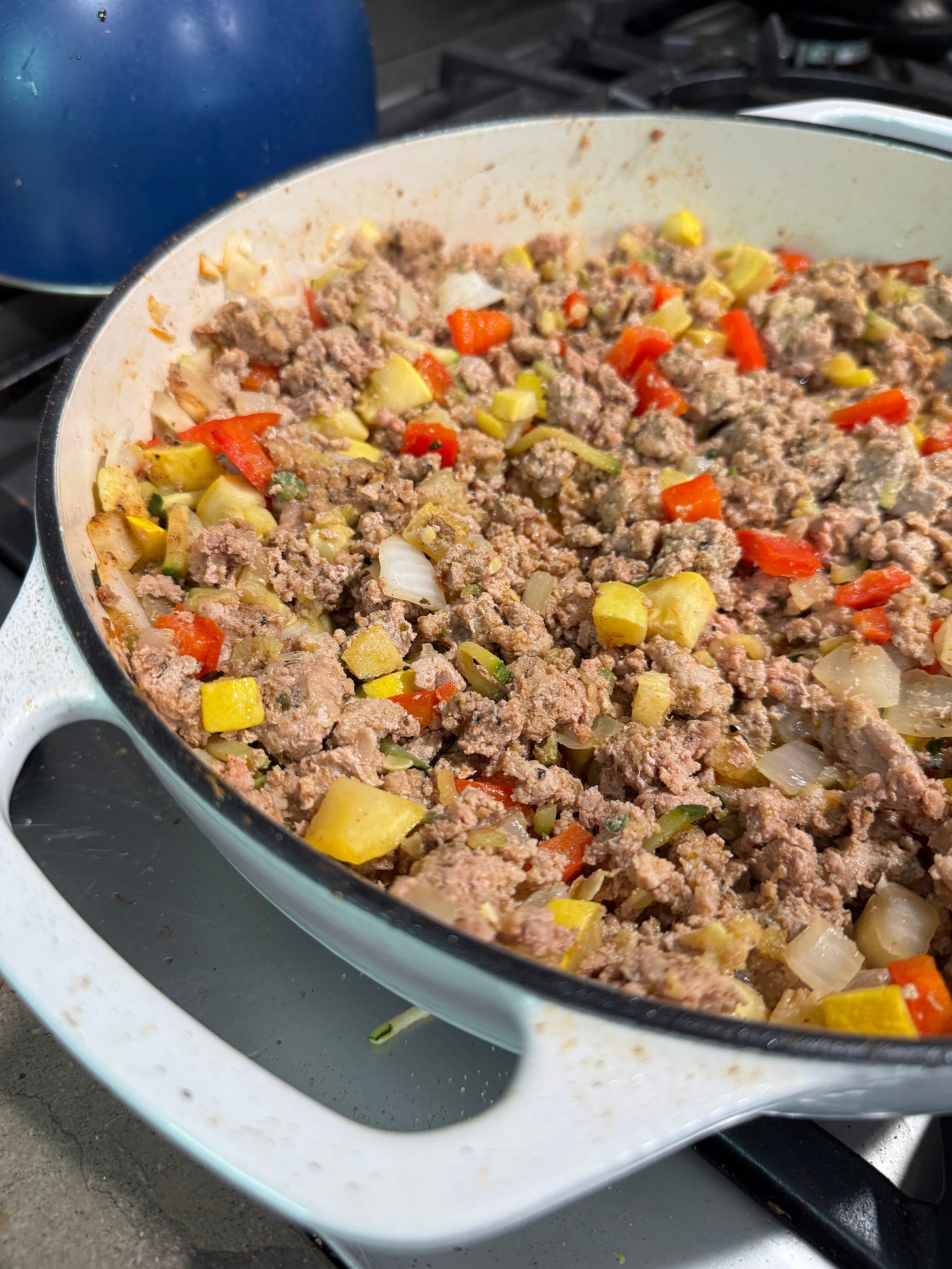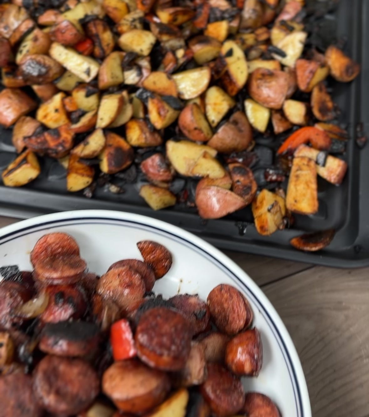 It’s a filling, one-pan meal that we make on repeat during busy weeks.