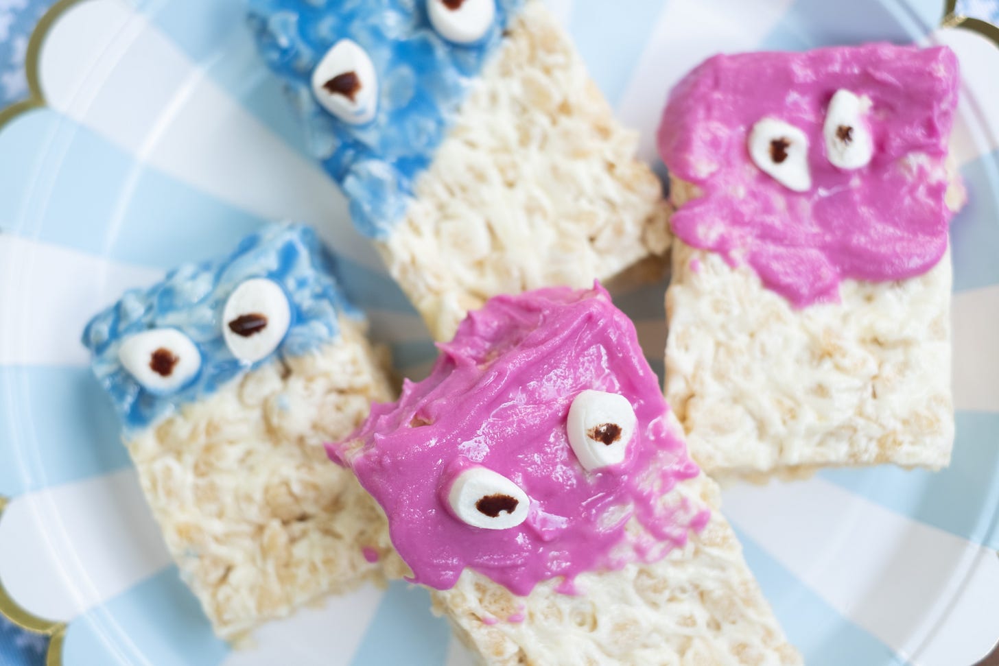 This is one of those recipes thatâs just as fun to make as it is to eat. My preschooler stood on the stool just like I once did, helping stir the gooey marshmallows and pressing the mixture into the pan. Decorating them for Halloween was the best partâbecause letâs be honest, googly monster eyes made from marshmallows and chocolate are always a hit.