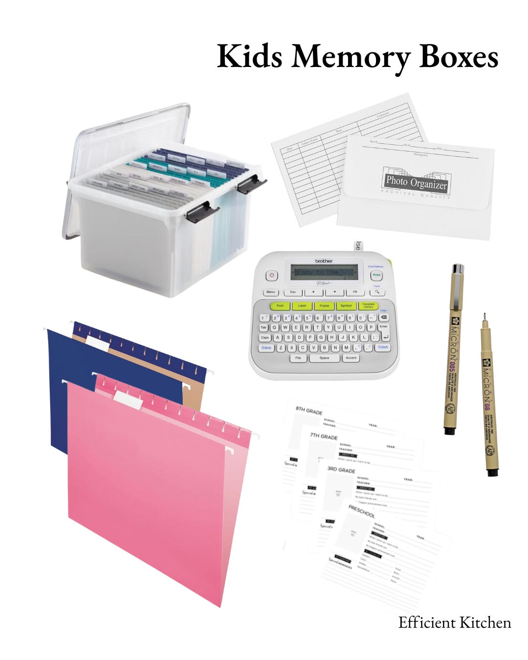 I had started out with getting my kids BISGO boxes from the Container Store when they were born, but the hanging file folder boxes were very small. I had a small “memory” box for bulkier items. Neither of these were working once one of my kids started elementary school. I needed a better solution.