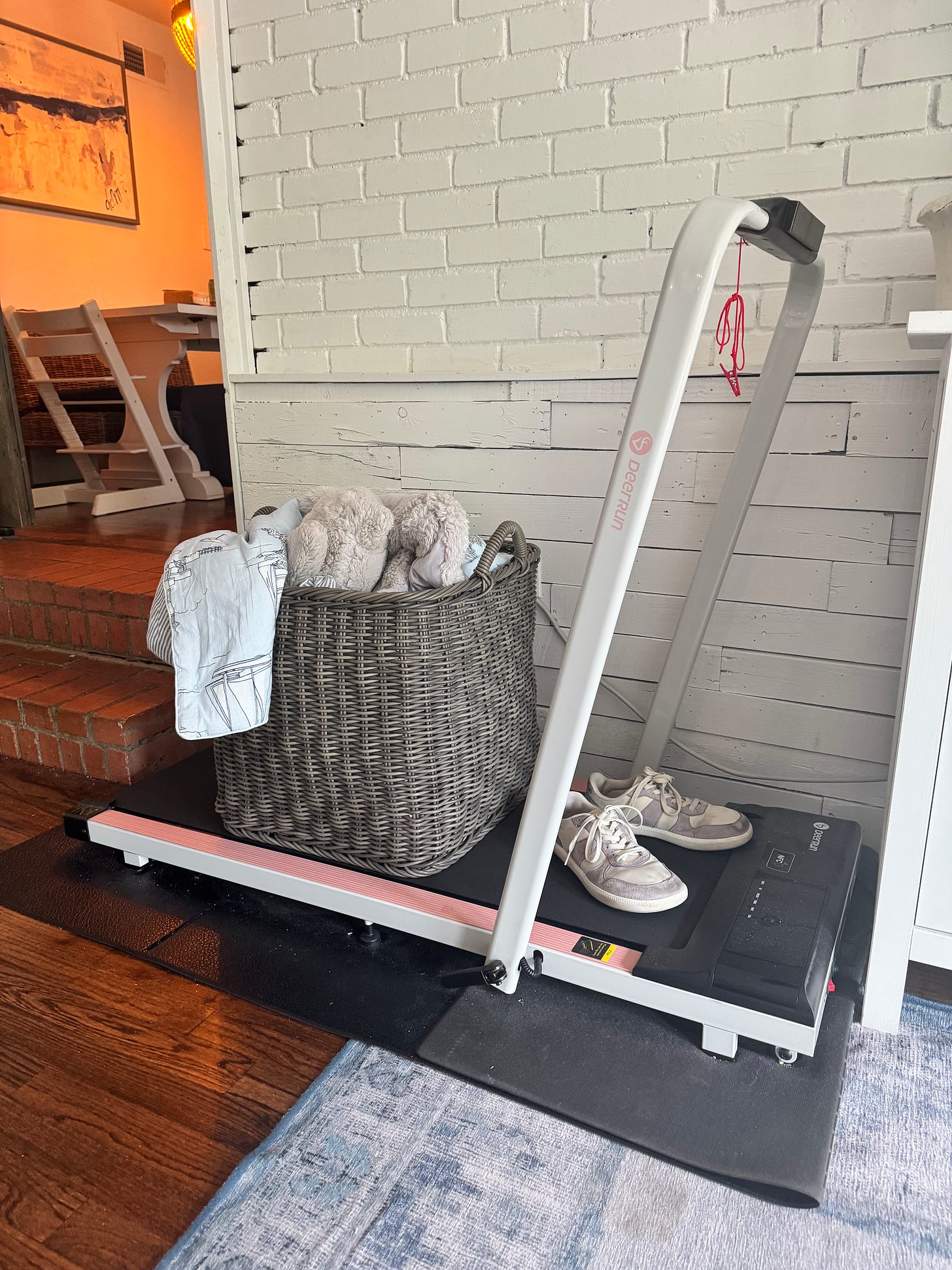 I listen while I’m in car line, washing dishes, doing laundry, cooking, and while I’m walking. I try to walk on my walking pad for 30 minutes every day even if it’s interrupted. I know I’ve mentioned it before, but it’s one of my favorite purchases. We previously had a bike and sold it. I find I use the walking pad far more even if it is not a great piece of “decor” in my house. You can find all my favorite barefoot shoes here.